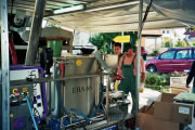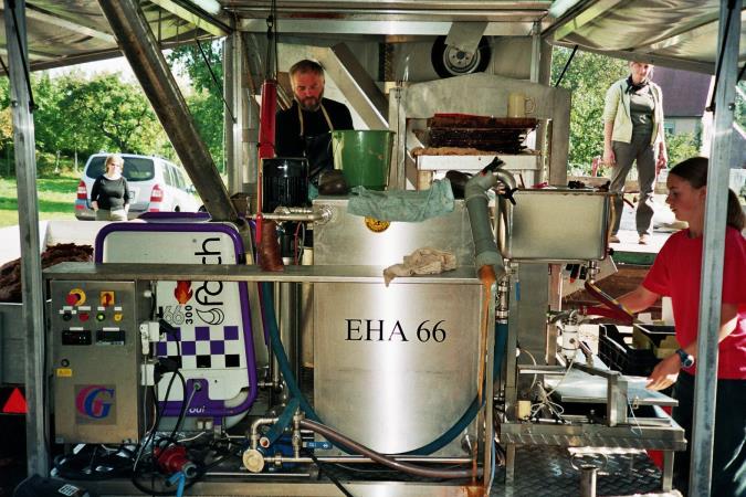 die mobile Anlage zum Einsatz. Mit dieser fahrbaren Saftpresse kann durch erhitzen